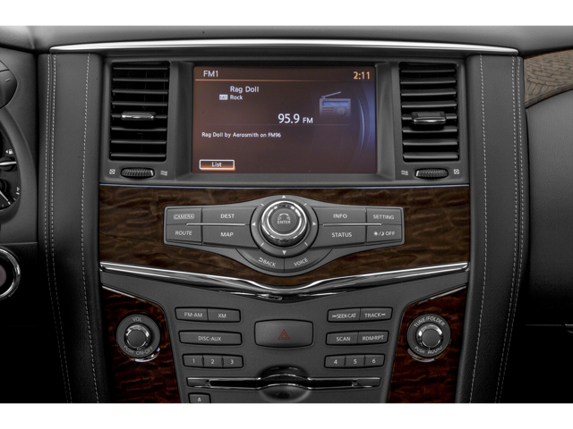Experience full-size luxury and commanding performance in this **2018 Nissan Armada Platinum**. A one-owner SUV finished in a sleek **Black exterior** with a **leather-appointed interior**, this Armada delivers refinement, comfort, and capability in one impressive package. With 109,941 miles, it demonstrates Nissan’s hallmark reliability and enduring quality. Under the hood lies a powerful **5.6L DOHC 32V Endurance V8 engine** paired with **Automatic Full-Time Four-Wheel Drive** and a **rear auto-leveling suspension**, delivering robust performance, confident handling, and impressive towing capability. The **Class IV towing equipment**, electronic transfer case, and trailer wiring harness ensure you’re always ready for work or adventure. Inside, the Platinum trim welcomes you with **heated leather seats**, **a heated leather and metal-look steering wheel with auto tilt-away**, and **memory settings** for the driver’s seat, mirrors, and steering wheel. The cabin’s upscale touches include simulated wood and metal-look trim accents, a full cloth headliner, and beautifully finished leather door inserts. The **Captain Seat Package** adds second-row comfort, ideal for family trips or executive transport. Technology takes center stage with an **Integrated Navigation System with Voice Activation**, **NissanConnect Services**, **Smart Device Integration**, and a premium **13-speaker Bose audio system** delivering crystal-clear sound. Rear passengers will enjoy the **Rear Entertainment System** complete with **two wireless headphones**, **A/V remote**, and **dual LCD rear monitors**, turning every journey into a first-class experience. Safety and driver assistance features enhance confidence on the road, including **Blind Spot Monitoring**, **Collision Mitigation (Front and Rear)**, and an **Aerial View Camera System** with **Intelligent Around View Monitor (i-AVM)** providing a 360-degree perspective for effortless parking and maneuvering. Additional protection comes from full-length curtain airbags, dual-stage front