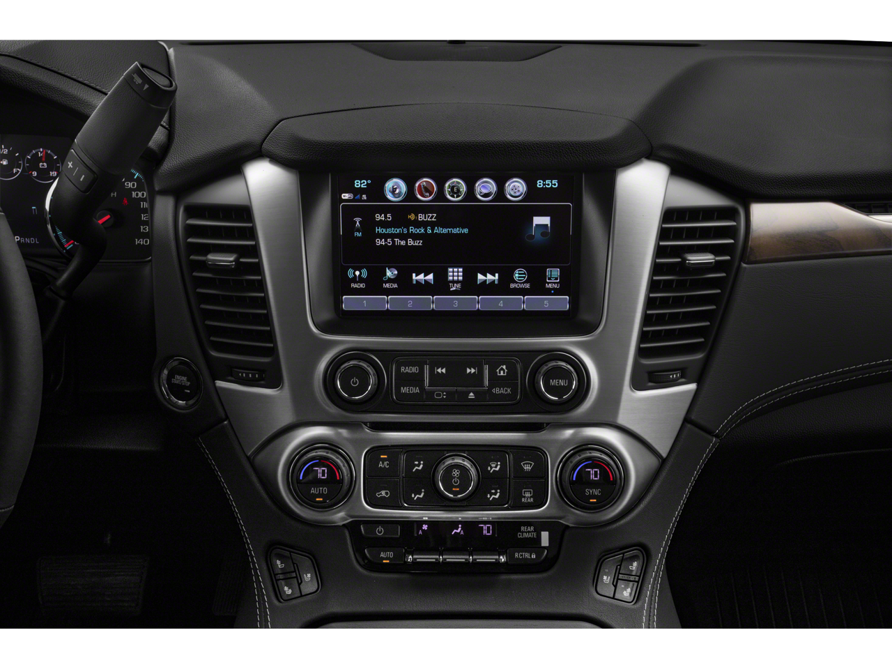 - Audio system, 8" diagonal Color Touch Screen Navigation with GMC Infotainment System AM/FM/SiriusXM stereo with seek-and-scan and digital clock, includes Bluetooth® streaming audio for music and select phones; voice-activated technology for radio and phone; and Shop. Featuring Apple CarPlay and Android Auto capability for compatible phone; 5 USB ports and 1 auxiliary jack