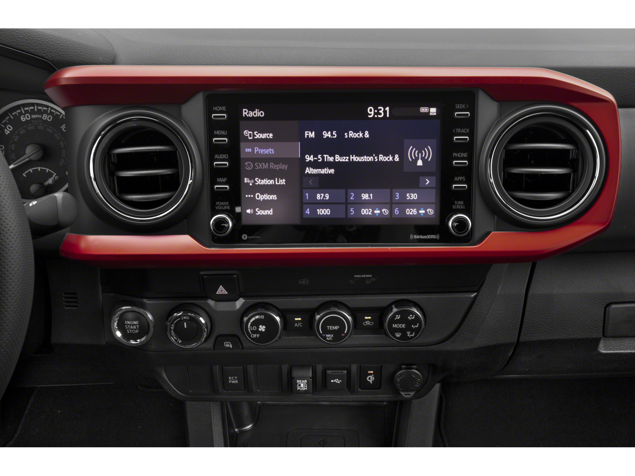 50 STATE EMISSIONS, Advanced Technology Pkg., ALL WEATHER FLOOR LINER & DOOR SILL PROTECTOR PKG, Aluminum/Alloy Wheels, BED MAT, BLACK CHROME EXHAUST TIP, BLACK TAILGATE INSERT, BLACKOUT EMBLEM OVERLAYS, BLACKOUT PACKAGE, CEMENT, FABRIC SEAT TRIM (FD), DOOR SILL PROTECTORS, HARD TRI-FOLD TONNEAU COVER, LED DAYTIME RUNNING LIGHTS & FOG LIGHTS, LED FOG LAMP W/BLACK BEZEL, Navigation System, Rear Parking Sensors, SUPER WHITE, TECHNOLOGY PACKAGE, Technology Pkg., Towing/Camper Pkg, TRD SPORT PACKAGE, 130 amp alternator,Perimeter alarm,Locking glove box,Outside temp gauge,Front map lights,Fade-to-off interior lighting,Gas-pressurized shock absorbers,Engine oil cooler,Full cloth headliner,Body-colored door handles,Rear child safety locks,Front center armrest,Engine immobilizer,Driver foot rest,Cruise control w/steering wheel controls,Color-keyed overfenders,Variable intermittent wipers,Air filtration,Double wishbone front suspension w/coil springs,Single stainless steel exhaust,Rear cupholder,Black grille w/body-color surround,Steel spare wheel,Front anti-roll bar,Low tire pressure warning,Manual tilt/telescoping steering column,Fully Galvanized Steel Panels,6 Speakers,Integrated Roof Antenna,Front Cupholder,Full Carpet Floor Covering,Side Impact Beams,Curtain 1st And 2nd Row Airbags,Airbag Occupancy Sensor,Electronic Transfer Case,Battery w/Run Down Protection,Leather/Metal-Look Steering Wheel,HVAC -inc: Underseat Ducts,Cloth Door Trim Insert,2 LCD Monitors In The Front,Full Floor Console w/Covered Storage, Mini Overhead Console w/Storage And 2 12V DC Power Outlets,Body-Colored Rear Step Bumper w/Black Rub Strip/Fascia Accent,2 12V DC Power Outlets,Body-Colored Power Heated Side Mirrors w/Manual Folding and Turn Signal Indicator,Delayed Accessory Power,Dual Stage Driver And Passenger Seat-Mounted Side Airbags,Dual Stage Driver And Passenger Front Airbags,Outboard Front Lap And Shoulder Safety Belts -inc: Rear Center 3 Point, Height Adjusters and Pretensioners,Hydraulic Power-Assist Speed-Sensing Steering,Auto Locking Hubs,Full-Size Spare Tire Stored Underbody w/Crankdown,Body-Colored Front Bumper w/1 Tow Hook,Part-Time Four-Wheel Drive,Driver And Passenger Knee Airbag,Tailgate Rear Cargo Access,Brake Actuated Limited Slip Differential,Black Side Windows Trim, Black Front Windshield Trim and Black Rear Window Trim,1 Skid Plate,Regular Composite Box Style,Integrated Storage,GVWR: 5,600 lbs,21.1 Gal. Fuel Tank,Instrument Panel Bin, Interior Concealed Storage, Driver / Passenger And Rear Door Bins and 2nd Row Underseat Storage,Front Disc/Rear Drum Brakes w/4-Wheel ABS, Front Vented Discs, Brake Assist, Hill Descent Control and Hill Hold Control,Manual Anti-Whiplash Adjustable Front Head Restraints and Manual Adjustable Rear Head Restraints,Dynamic Radar Cruise Control (DRCC),Seats w/Cloth Back Material,60-40 Folding Split-Bench Front Facing Flip Forward Cushion/Seatback Rear Seat,Engine: 3.5L Atkinson-Cycle V6 -inc: VVT-iW wider intake and VVT-i exhaust,Tires: P265/65R17 AS,Power Sliding Rear Window w/Privacy Glass,120V/400W Deck Mounted AC Power,Driver Seat,Lane Departure Alert (LDA) Lane Departure Warning,1155# Maximum Payload,Interior Trim -inc: Metal-Look Door Panel Insert, Metal-Look Console Insert and Chrome/Metal-Look Interior Accents,Passenger Seat,Trailer Wiring Harness,Class IV Towing Equipment -inc: Hitch and Trailer Sway Control,Wheels: 17" x 7.5J Machined Alloy,Front Bucket Seats -inc: 8-way power adjustable driver seat w/lumbar support and 4-way manual passenger seat,Wi-Fi Connect with up to 2GB within 3-month trial Mobile Hotspot Internet Access,Toyota Safety Sense P (TSS-P),Leather/Metal-Look Gear Shifter Material,Paint w/Decal,Analog Appearance,Headlights-Automatic Highbeams,Collision Mitigation-Front,Driver Monitoring-Alert,Solid Axle Rear Suspension w/Leaf Springs